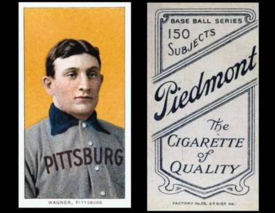 This is the T206 Piedmont Honus Wagner card--the rarest and most valuable baseball card in the world. It last sold for 2.8 million dollars.